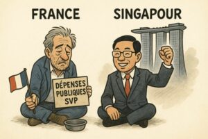 💰 Les dépenses publiques de Singapour plafonnent à 18 % du PIB (vs 57 % ici)