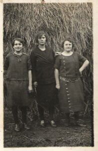 A droite, c’est la fermière, qui lui avait prêté une « tenue correcte » et des chaussures pour l’occasion, car habituellement elle portait des sabots.